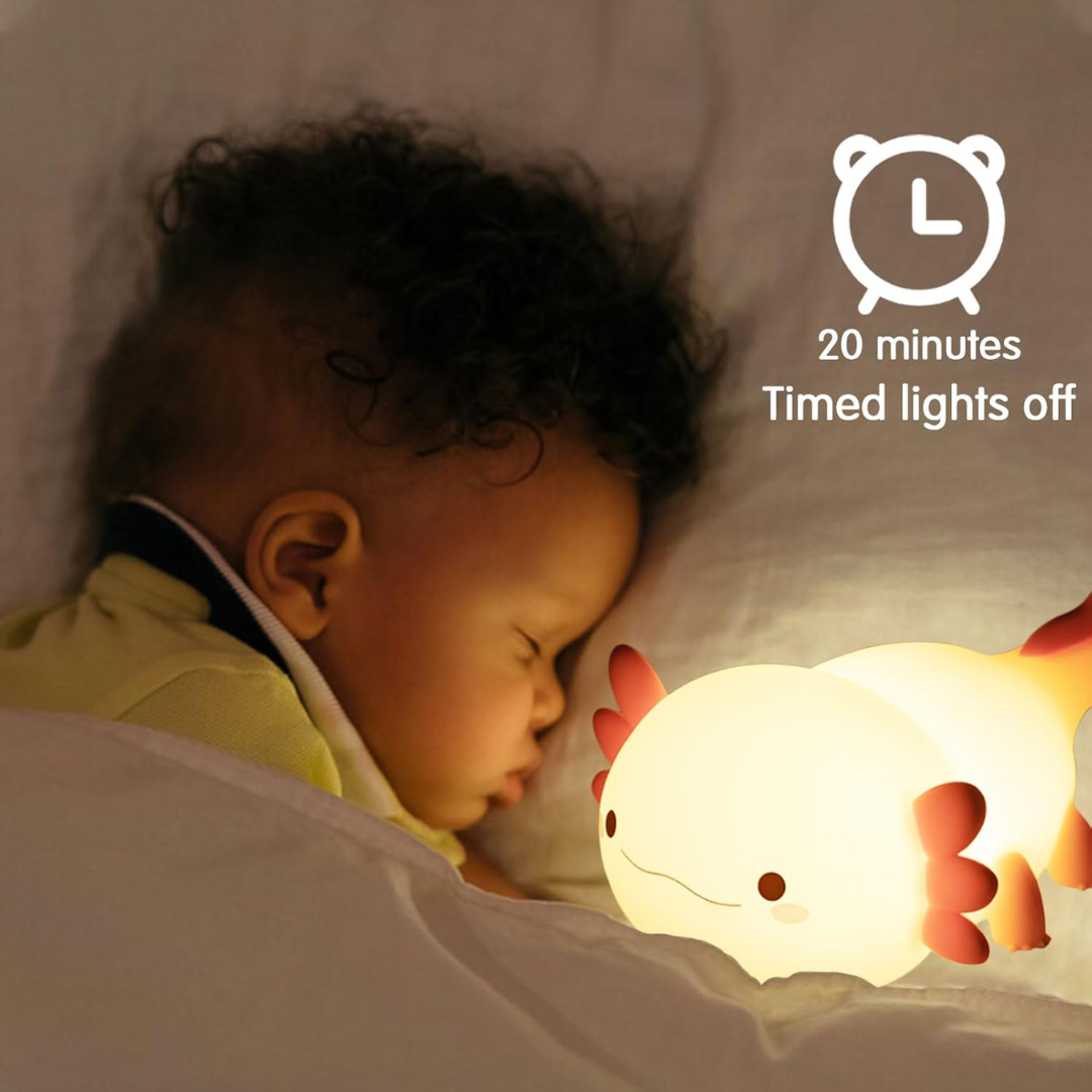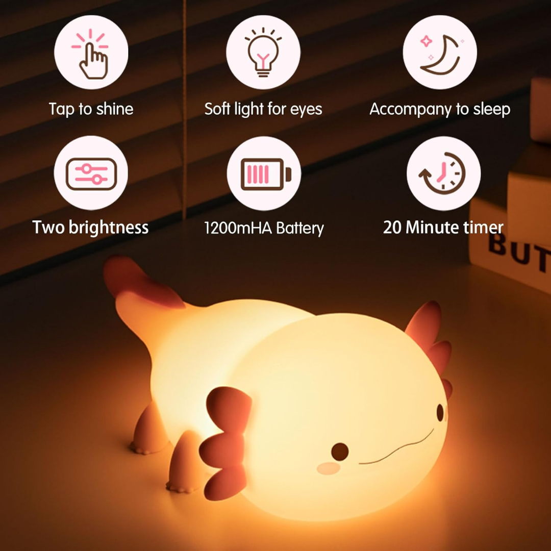 ★★★★★Encendida por la noche es simplemente adorable. Me encanta el ajolote y la luz suave que da.